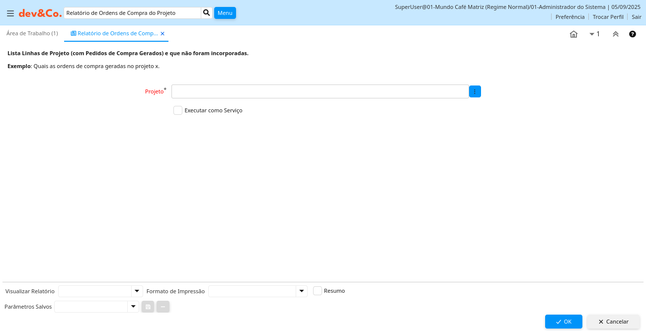 Ajuda: Exemplo: Quais as ordens de compra geradas no projeto x.