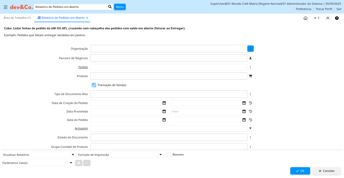 Relatório: Relatório de Pedidos em Aberto