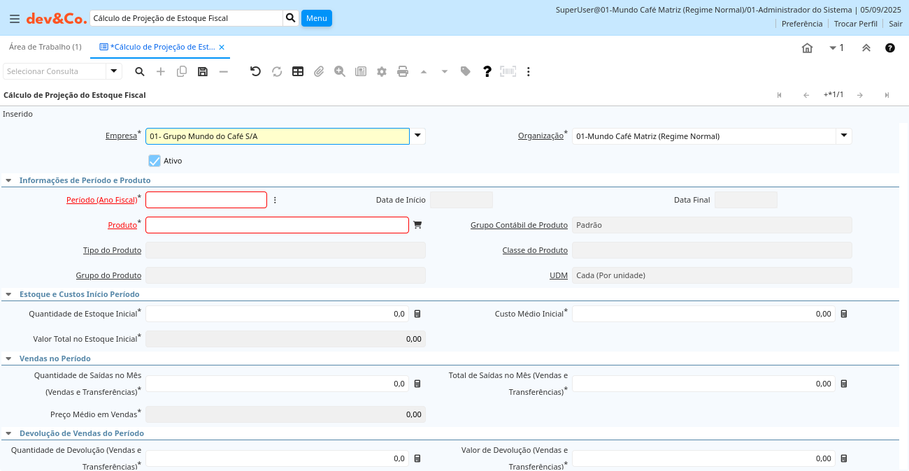 Janela: Cálculo de Projeção de Estoque Fiscal