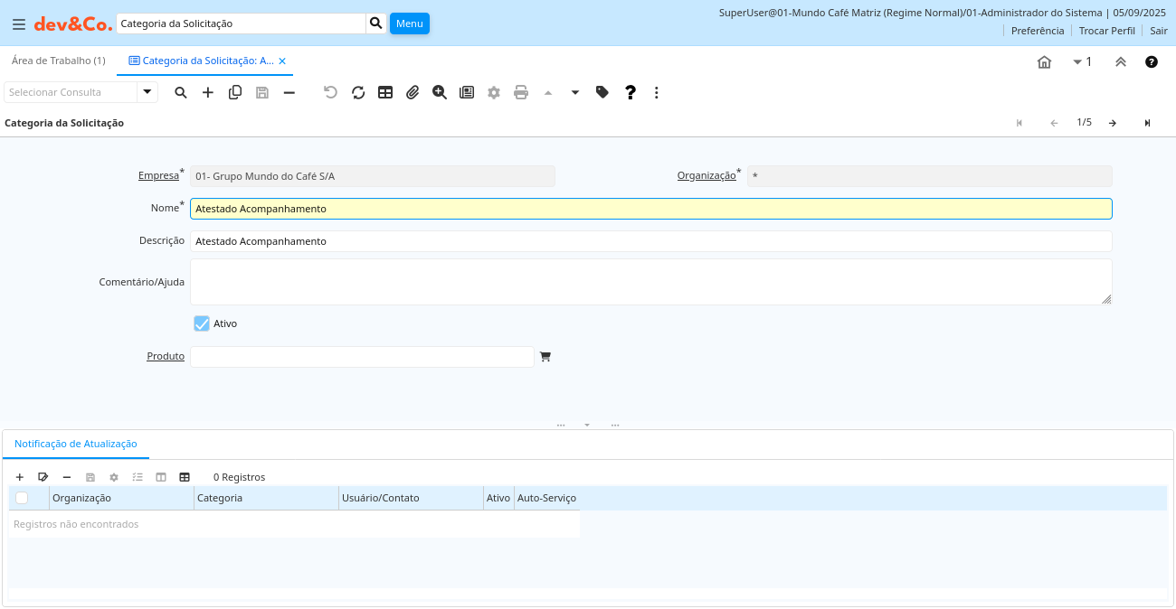 Descrição: Gerenciamento da Categoria da Solicitação