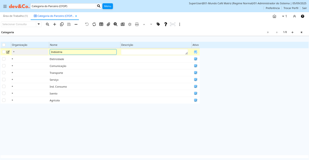 Janela: Categoria do Parceiro (CFOP)