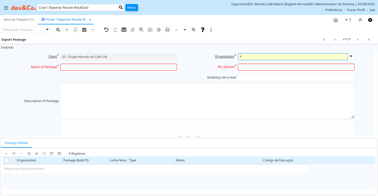 | Código de Execução | ad_package_exp_detail.ExecCode text Text | ||