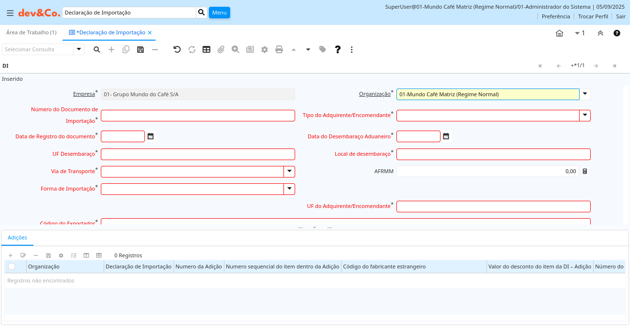Ajuda: Preenchimento dos dados básicos da Declaração de Importação utilizados na emissão de NFe