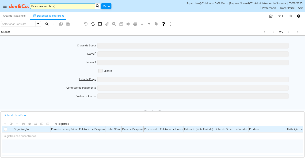 Ajuda: Visualizar e modificar Linhas de Relatório de Horas e Despesas. Ele lista itens de despesa para o parceiro de negócios na linha de despesa onde as linhas de despesa ainda não tiverem pedidos. (São criadas Ordens de Venda).