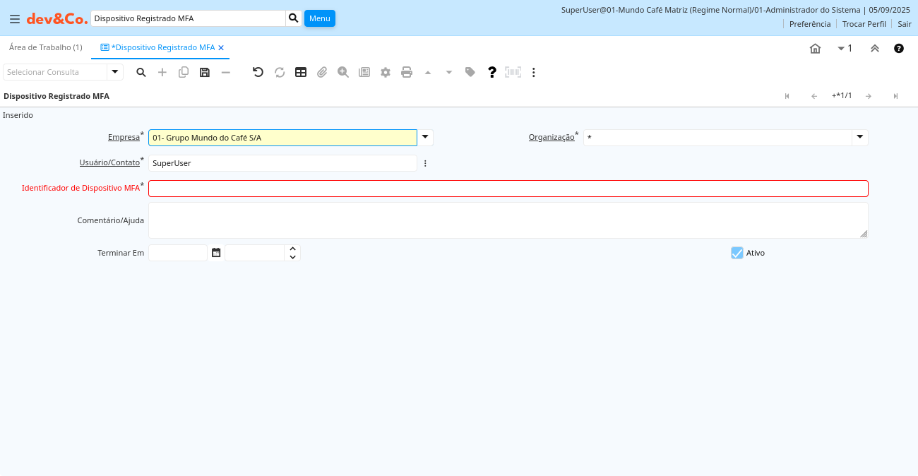 | Terminar Em | Terminar Em | mfa_registereddevice.Expiration timestamp without time zone Date+Time | |