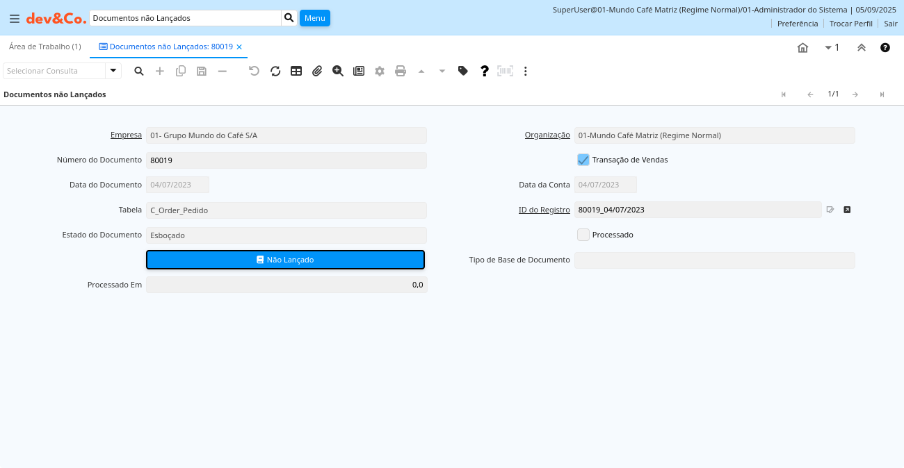 | Processado Em | A data + tempo (expresso em formato decimal) quando o documento tiver sido processado | Processado Em Data + Tempo salva o exato momento (nanossegundos de precisão se permitido pelo DB) quando um documento foi processado. | rv_unposted.ProcessedOn numeric Number |