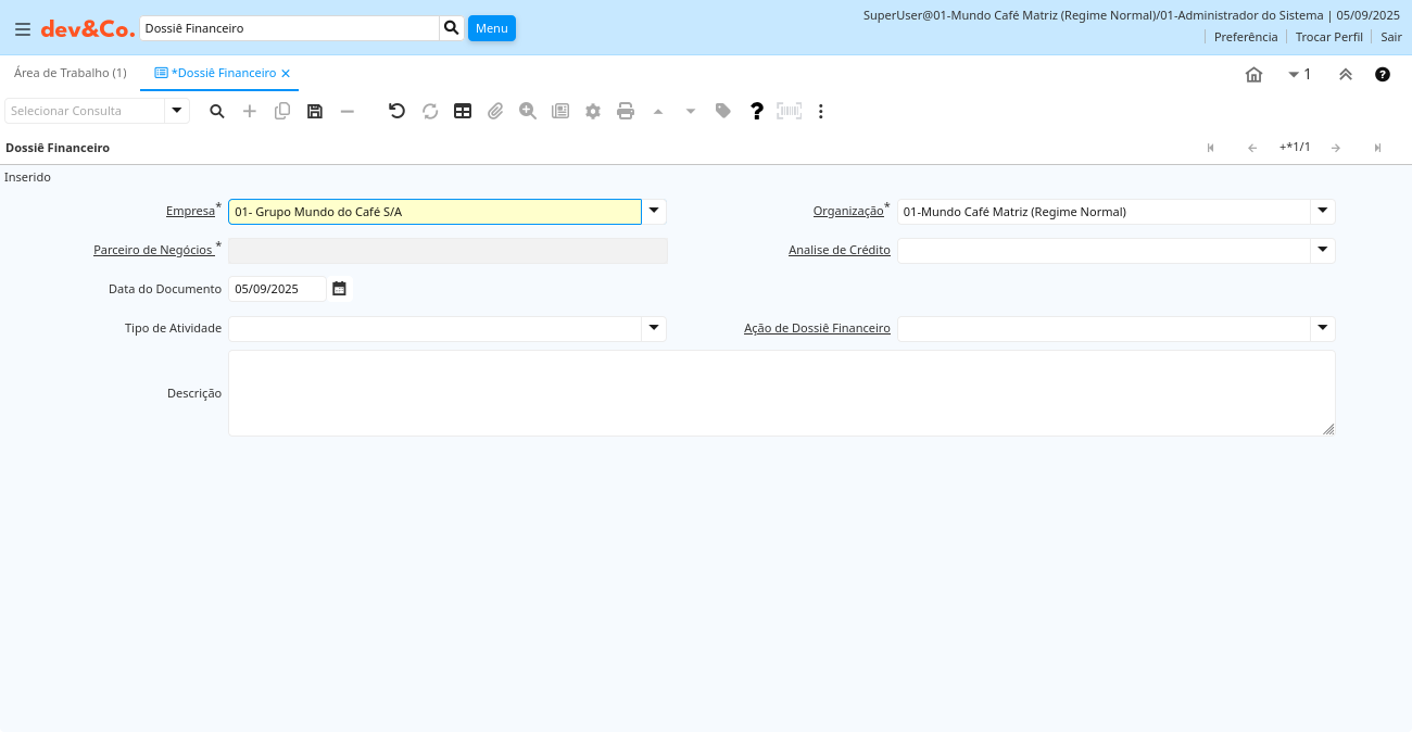 Aba: Dossiê Financeiro