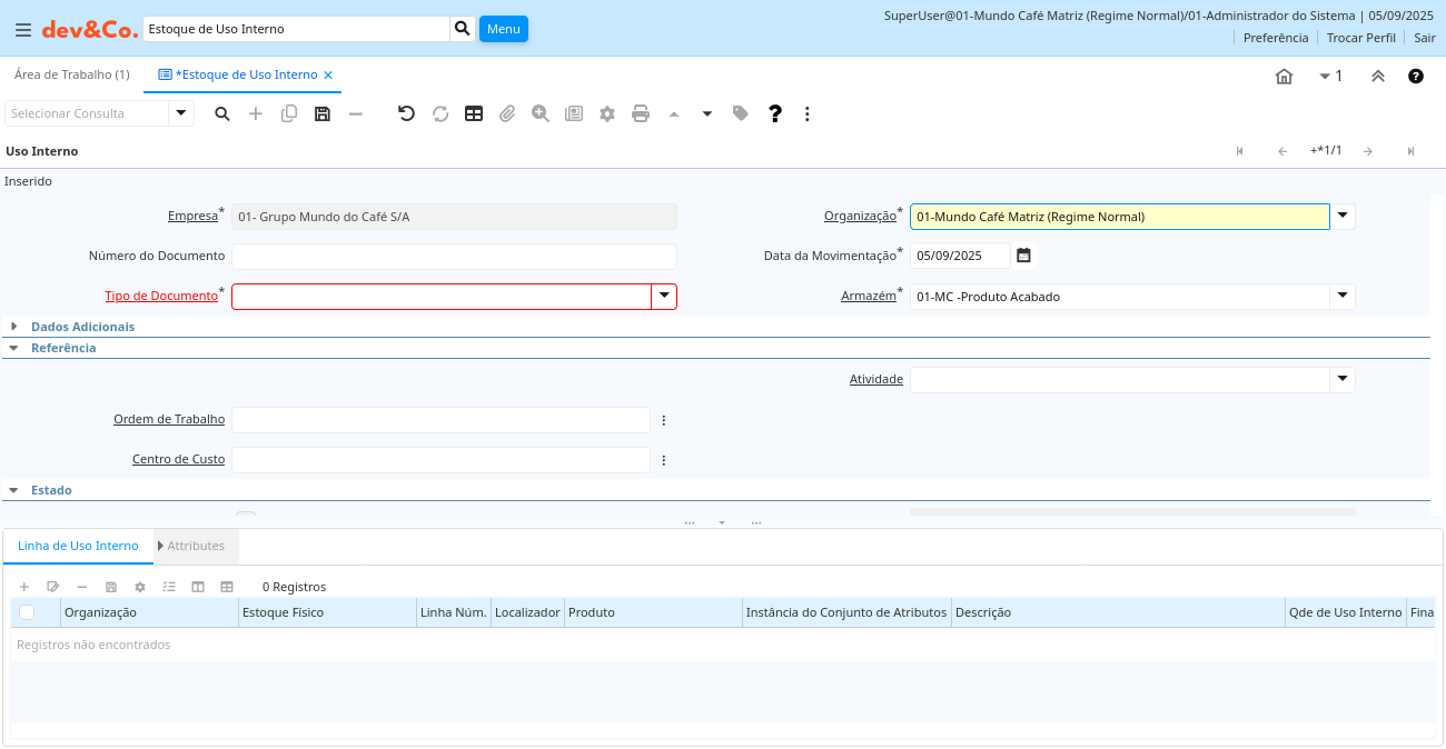 Descrição: Linha de Estoque de Uso Interno