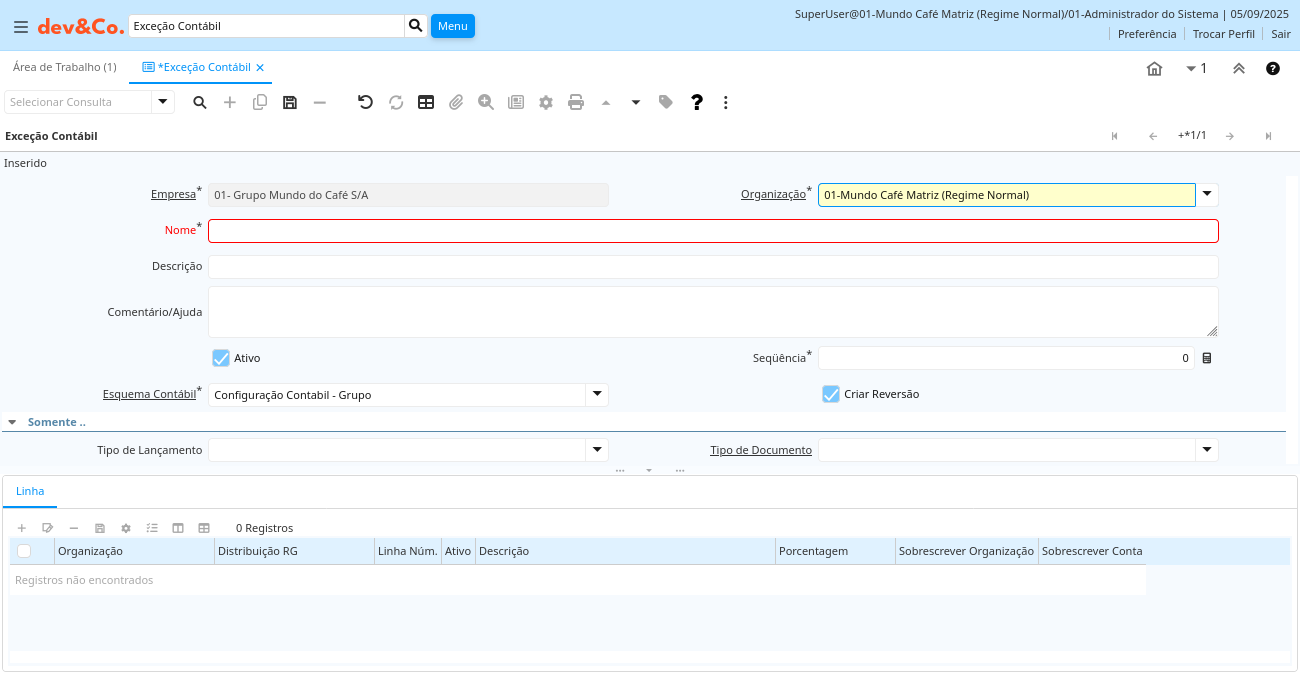 Descrição: Exceção Contábil