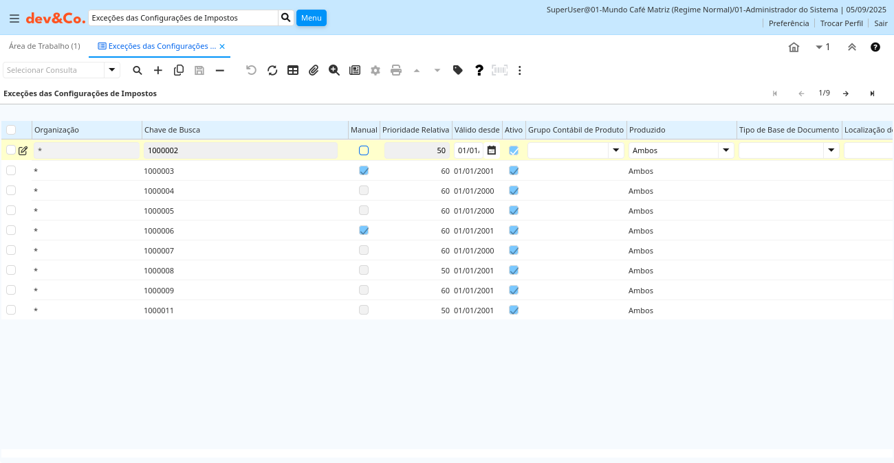 | Grupo de Configuração de Impostos | lbr_taxdefinition.COF_TaxDefinition_Group_ID numeric(10) Search | ||