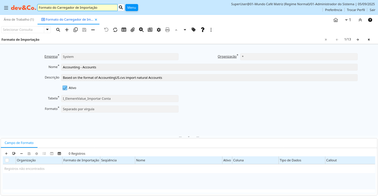 | Formato de Importação | ad_impformat_row.AD_ImpFormat_ID numeric(10) Table Direct | ||
