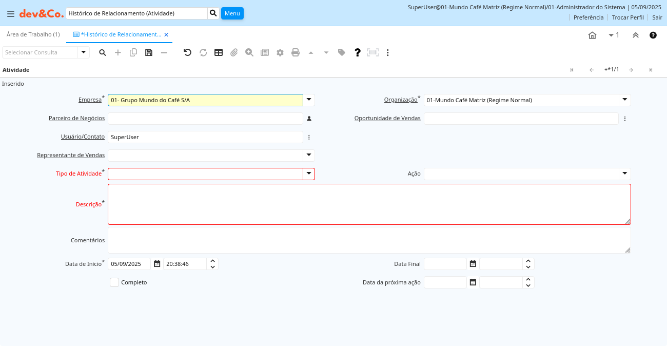 Descrição: Histórico de Relacionamento (Atividade)
