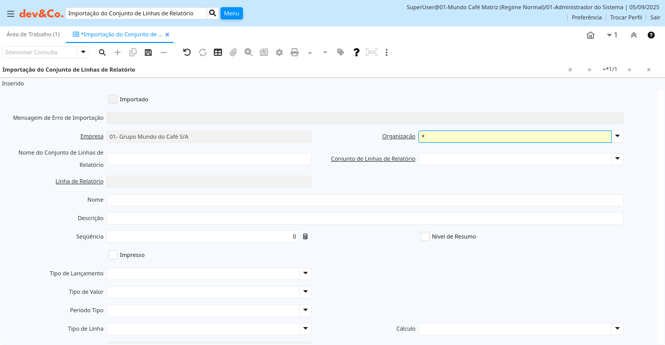 Descrição: Importação de Conjuntos de Linhas de Relatório