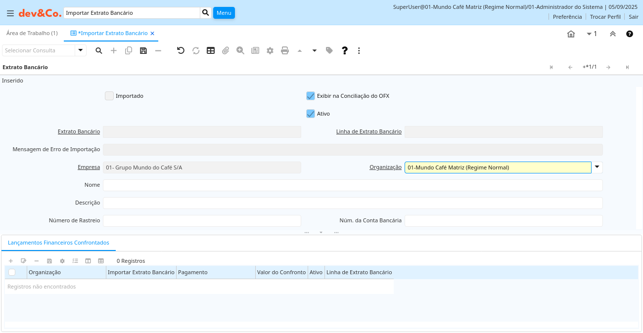 | Importar Extrato Bancário | Importação de Extrato Bancário | i_bankstatement.I_BankStatement_ID numeric(10) ID | |