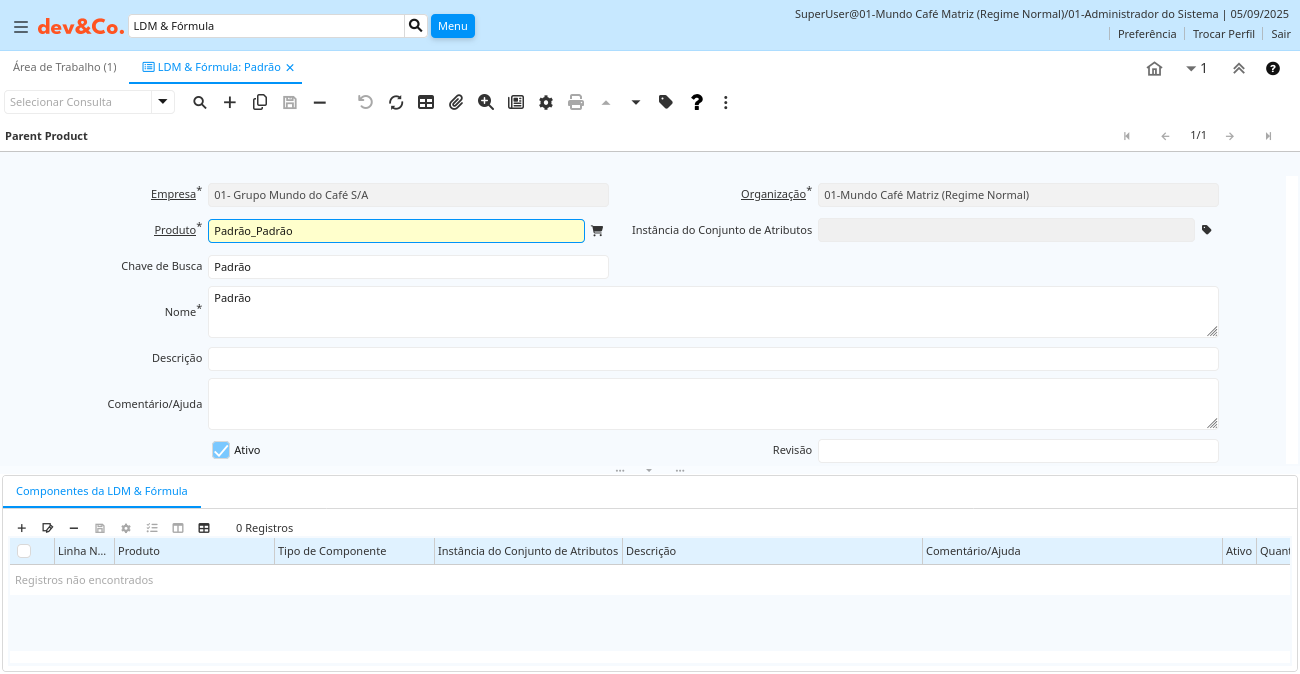 Ajuda: A informação relativa à cada componente que será utilizado na LDM & Fórmula do produto final