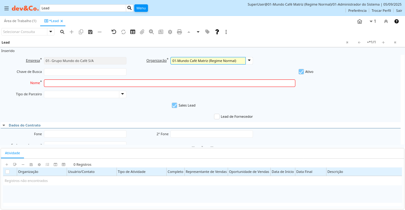 Ajuda: The Lead Window allows you to maintain Sales Leads. These are unqualified contacts to who you wish to market to.