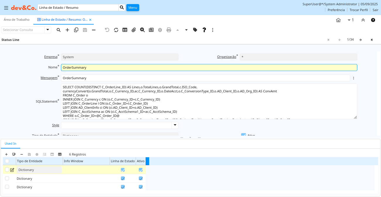 | Linha de Estado | ad_statuslineusedin.AD_StatusLine_ID numeric(10) Search | ||