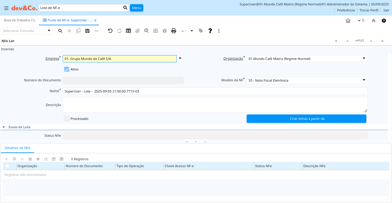 Aba: NFe Lot