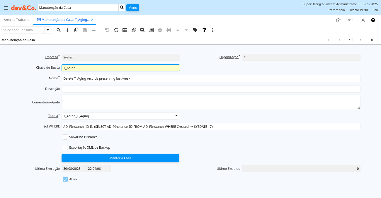 | Última Execução | ad_housekeeping.LastRun timestamp without time zone Date+Time | ||