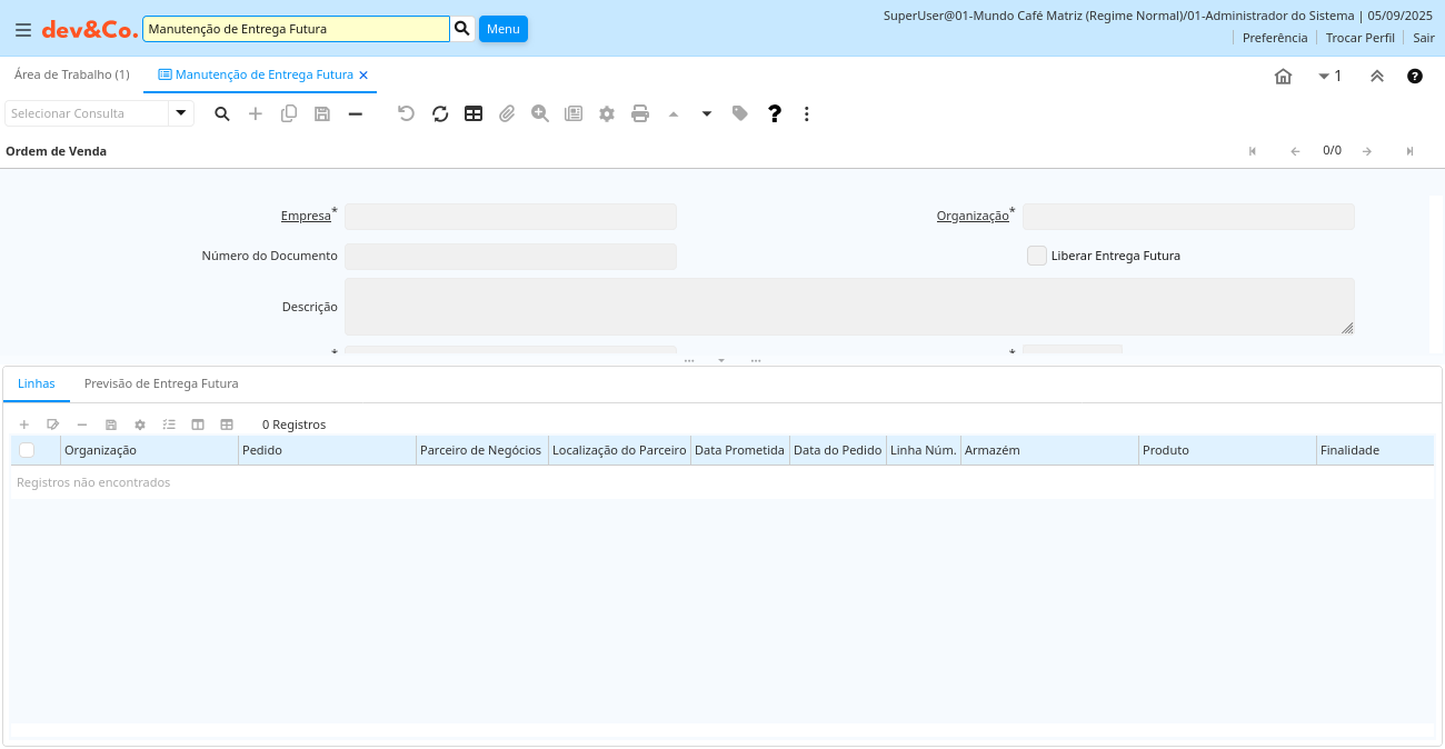 Janela: Manutenção de Entrega Futura