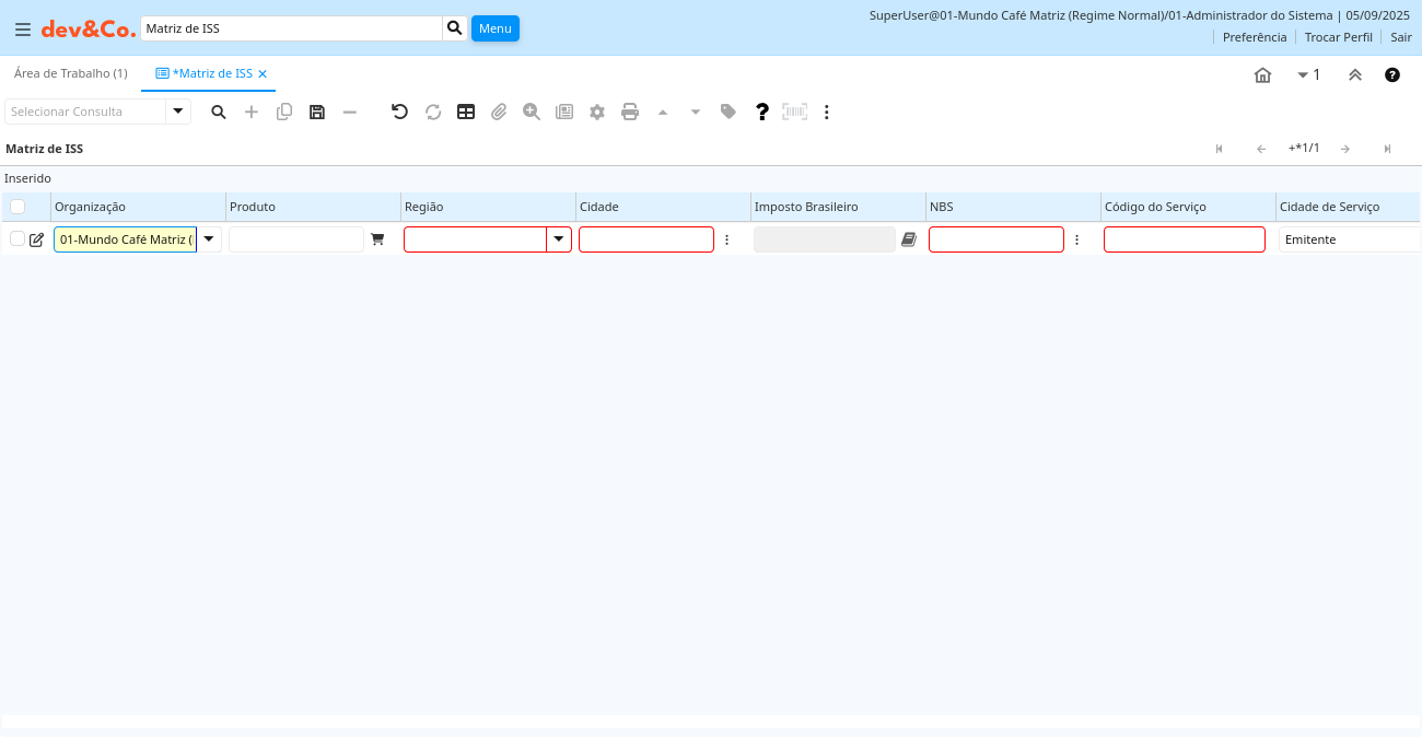 | Cidade de Serviço | lbr_issmatrix.COF_CidadeServico character(1) List | ||