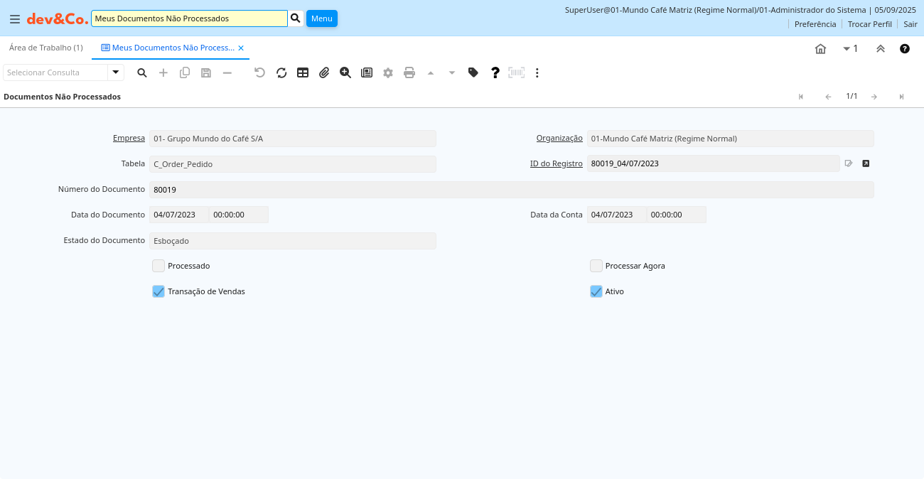 | Transação de Vendas | Esta é uma Transação de Vendas | A caixa de verificação "Transação de Vendas" indica se este item é uma Transação de Vendas. | rv_unprocessed.IsSOTrx Yes-No |