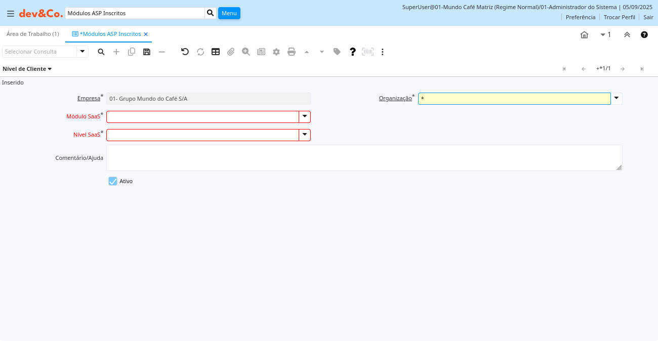 | Comentário/Ajuda | Comentário ou Dica | O campo "Ajuda" contém uma dica, comentário ou ajuda sobre o uso deste item. | asp_clientlevel.Help character varying(2000) Text |