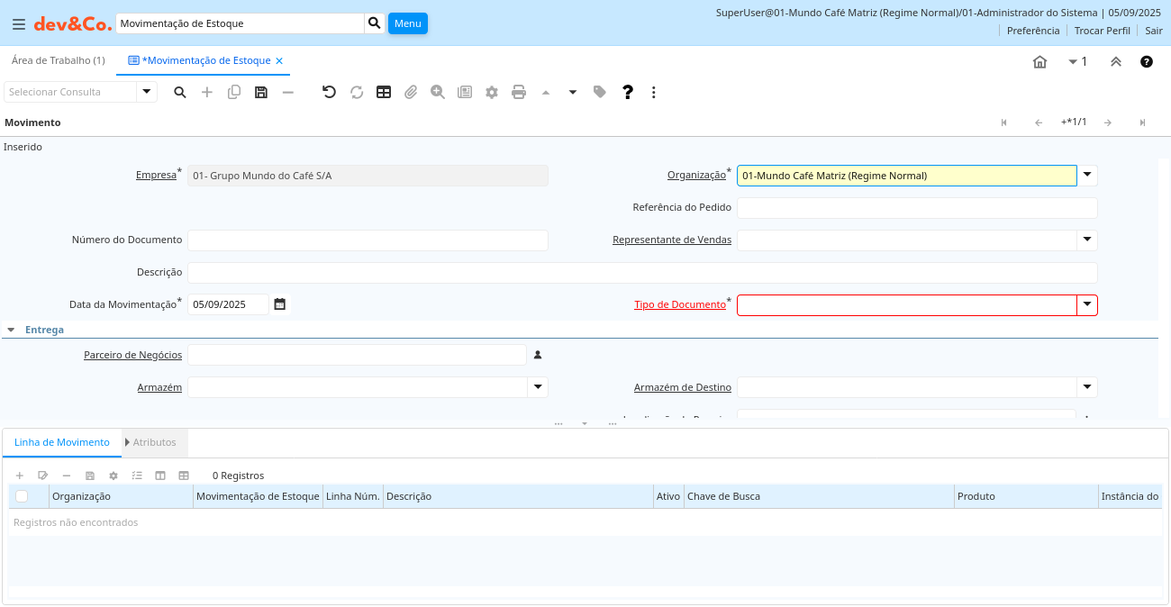Descrição: Introduzir a Linha de Movimentação de Estoque