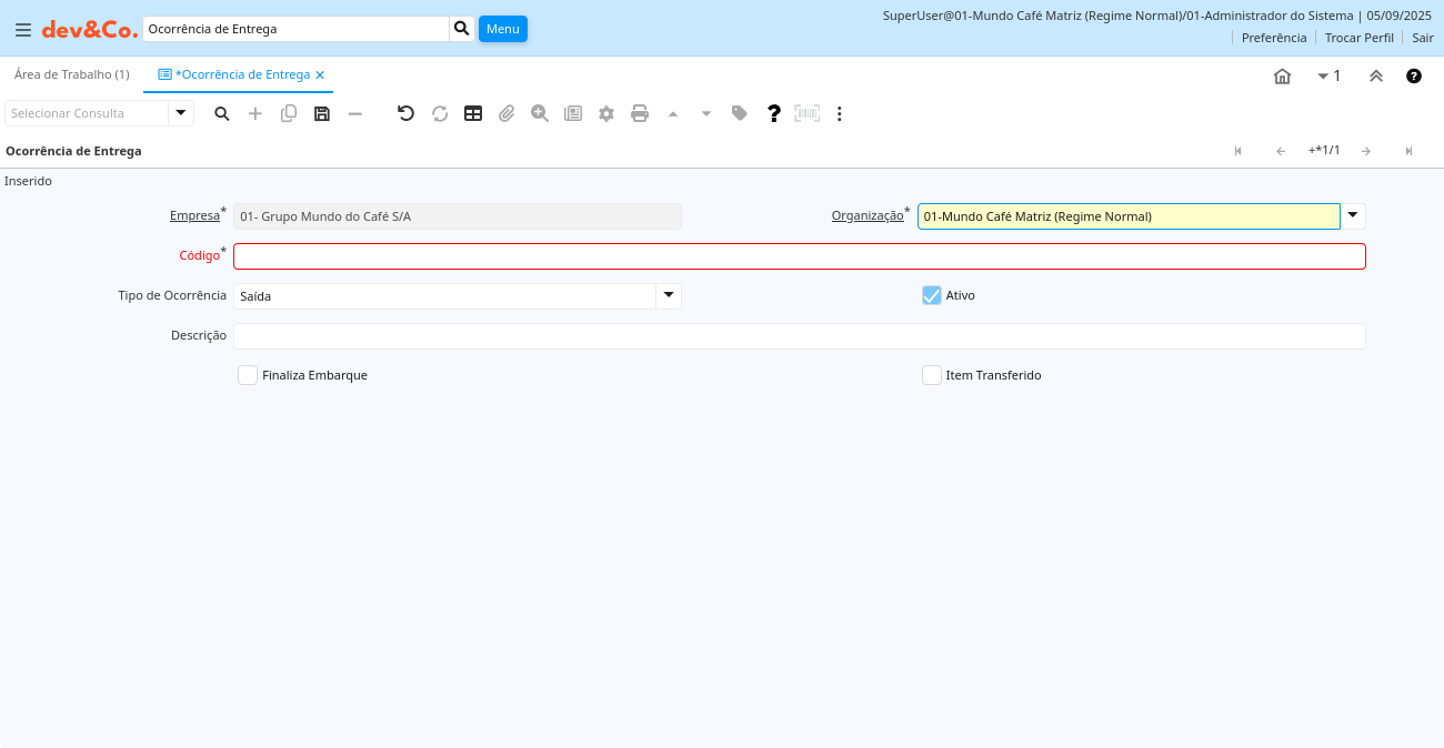 | Código | cof_deliveryoccurrence.cof_Code character varying(60) String | ||