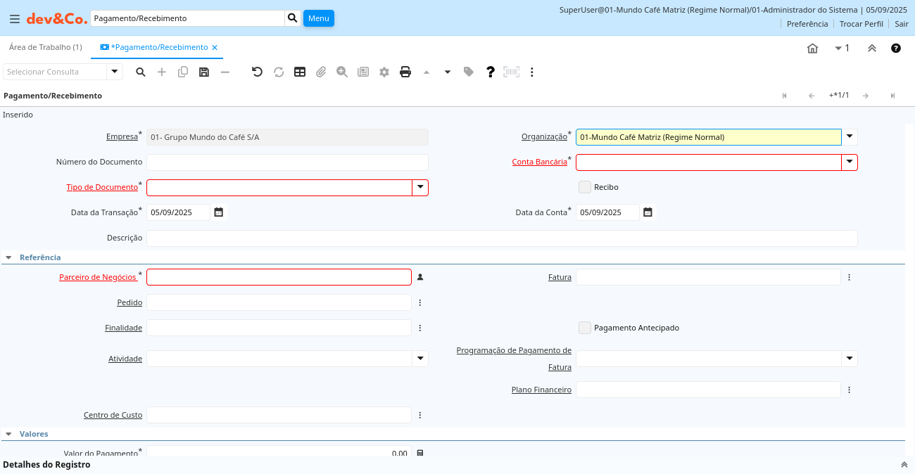| Data da Transação | Data da Transação | A "Data da Transação" indica a data da transação comercial. | c_payment.DateTrx timestamp without time zone Date |