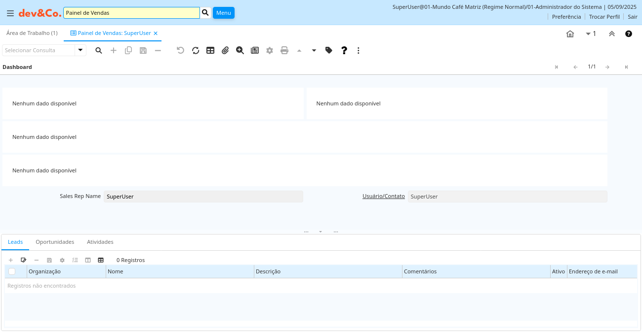 Descrição: O painel de vendas fornece facilidades para administração de oportunidades de vendas