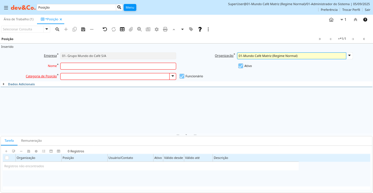 | Organização | Entidade organizacional dentro da Empresa | Uma "Organização" é uma unidade de sua "Empresa" ou "Entidade Legal" - os exemplos são loja, departamento. Você pode compartilhar dados entre organizações. | c_jobremuneration.AD_Org_ID numeric(10) Table Direct |