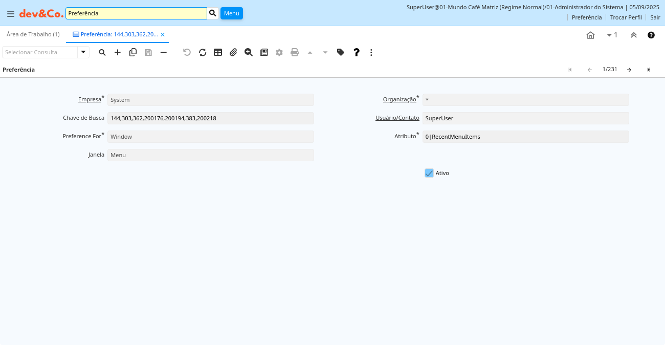 | Janela | Entrada de dados ou janela de exposição | O campo "Janela" identifica uma Janela única no sistema. | ad_preference.AD_Window_ID numeric(10) Table Direct |