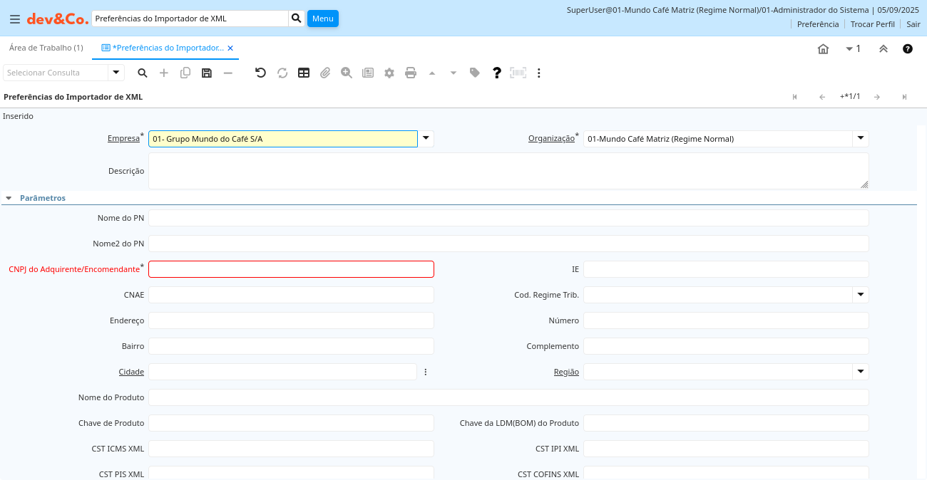 Aba: Preferências do Importador de XML