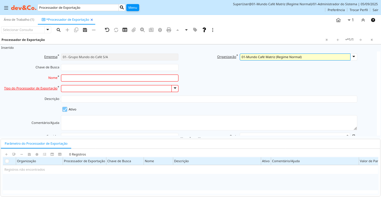| Organização | Entidade organizacional dentro da Empresa | Uma "Organização" é uma unidade de sua "Empresa" ou "Entidade Legal" - os exemplos são loja, departamento. Você pode compartilhar dados entre organizações. | exp_processorparameter.AD_Org_ID numeric(10) Table Direct |