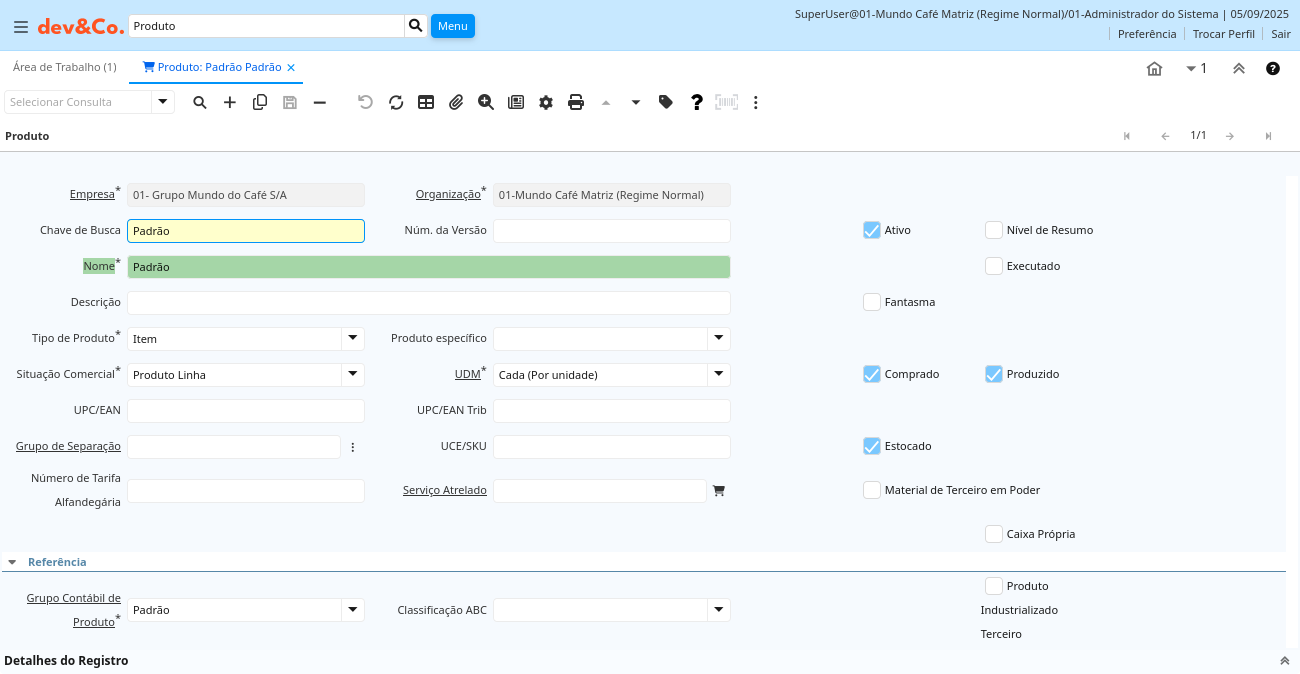 | Produzido | O produto é produzido | m_product.IsManufactured character(1) Yes-No | |