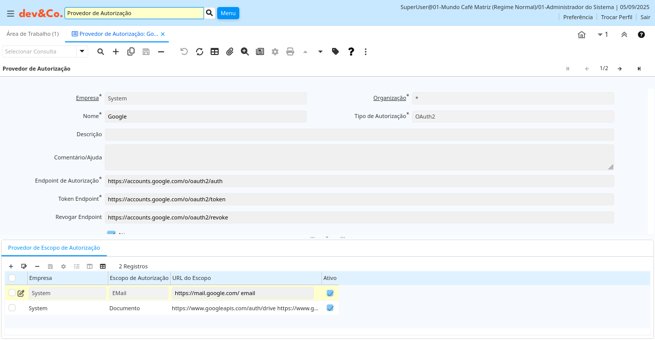 | Provedor de Autorização | ad_authorizationscopeprov.AD_AuthorizationProvider_ID numeric(10) Table Direct | ||