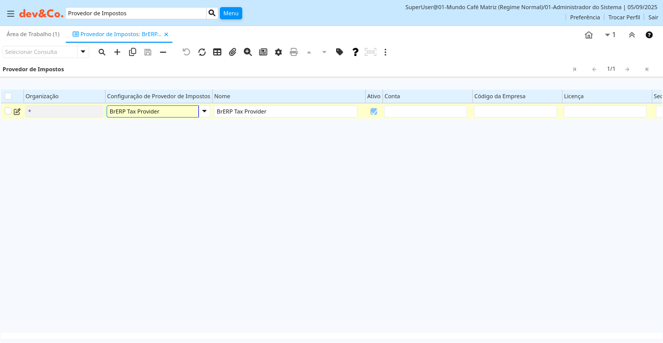 | Configuração de Provedor de Impostos | c_taxprovider.C_TaxProviderCfg_ID numeric(10) Table Direct | ||