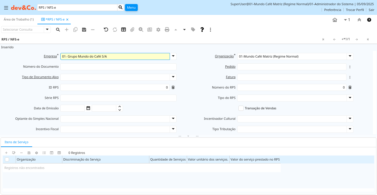 | Data de Emissão | Data da emissão do RPS | cof_rps.cof_DataEmissao timestamp without time zone Date+Time | |