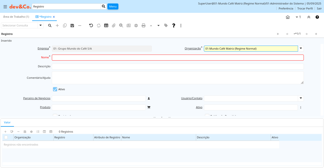 Descrição: Valores de Registro