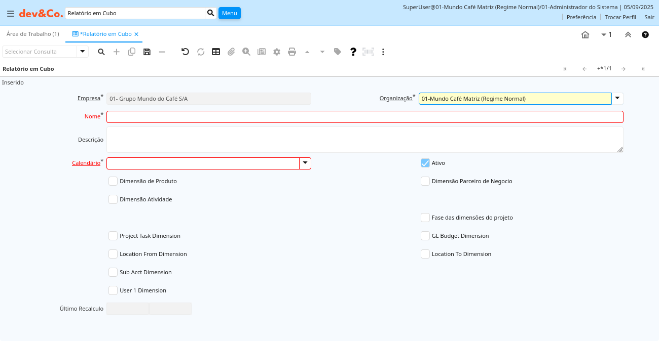 | Dimensão Atividade | Incluir Atividade como dimensão do cubo | pa_reportcube.IsActivityDim character(1) Yes-No | |