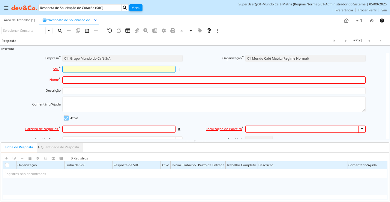 Janela: Resposta de Solicitação de Cotação (SdC)