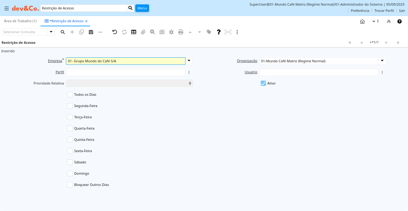 | Perfil | cof_restricaoacesso.COF_Role_ID numeric(10) Search | ||