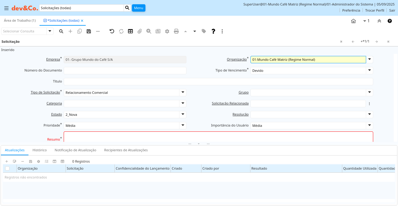 Descrição: Atualizações de Solicitações