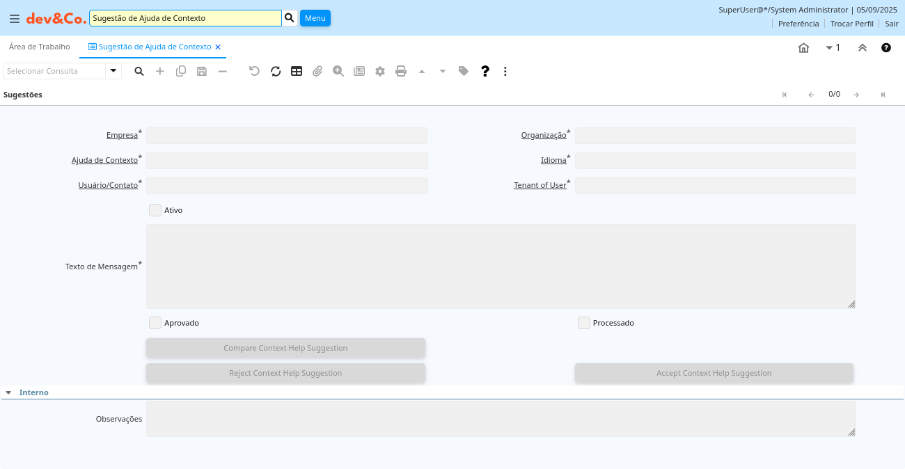 | Ajuda de Contexto | ad_ctxhelpsuggestion.AD_CtxHelp_ID numeric(10) Search | ||