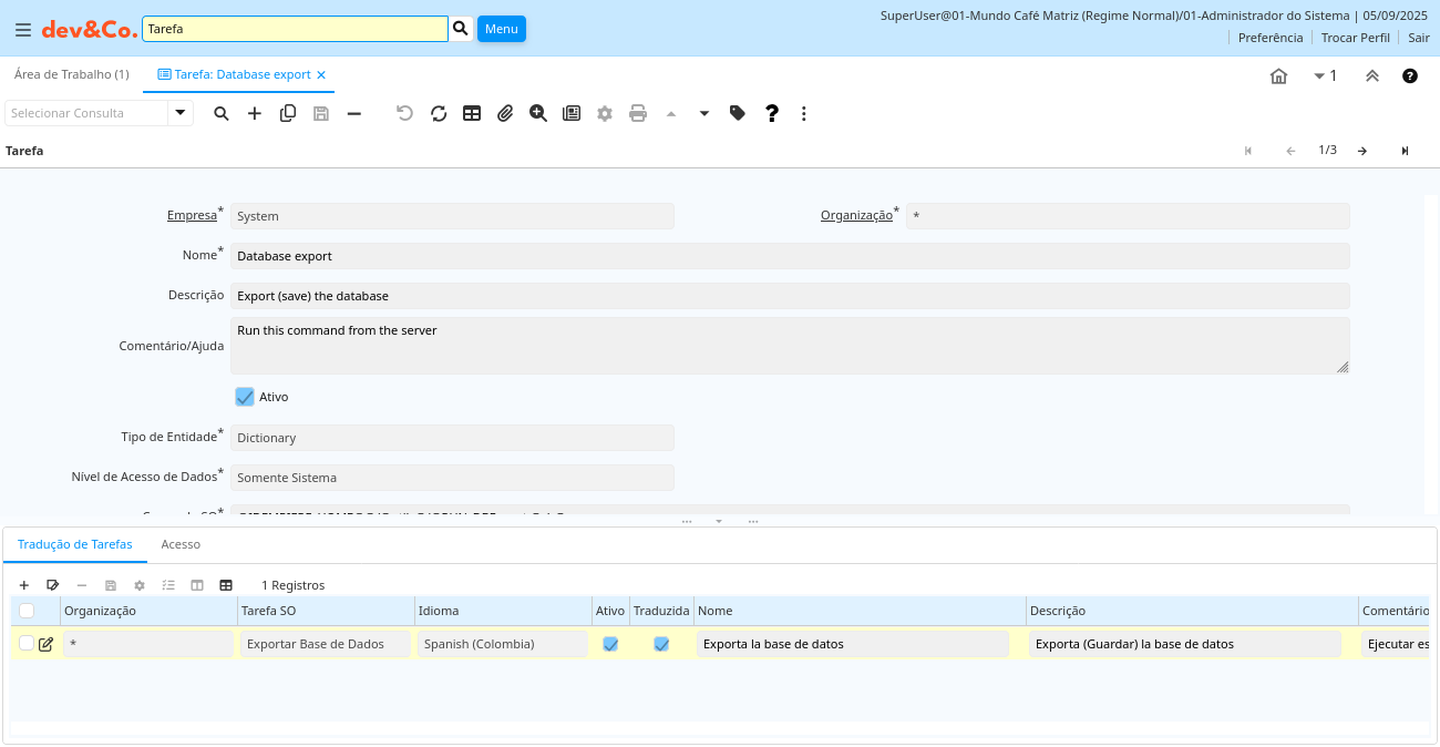 | Comentário/Ajuda | Comentário ou Dica | O campo "Ajuda" contém uma dica, comentário ou ajuda sobre o uso deste item. | ad_task_trl.Help character varying(2000) Text |