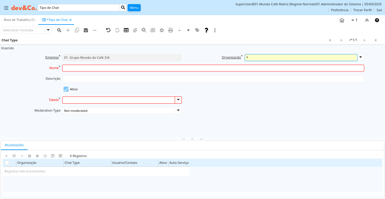 Ajuda: Chat Type allows you to receive subscriptions for particular content of discussions. It is linked to a table.
