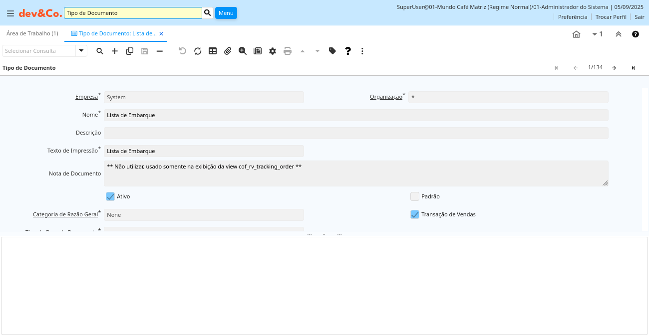 | Tipo de Documento | Tipo de Documento ou regras | O "Tipo de Documento" determina a seqüência do documento e as regras de processamento | lbr_cfopline.C_DocType_ID numeric(10) Search |