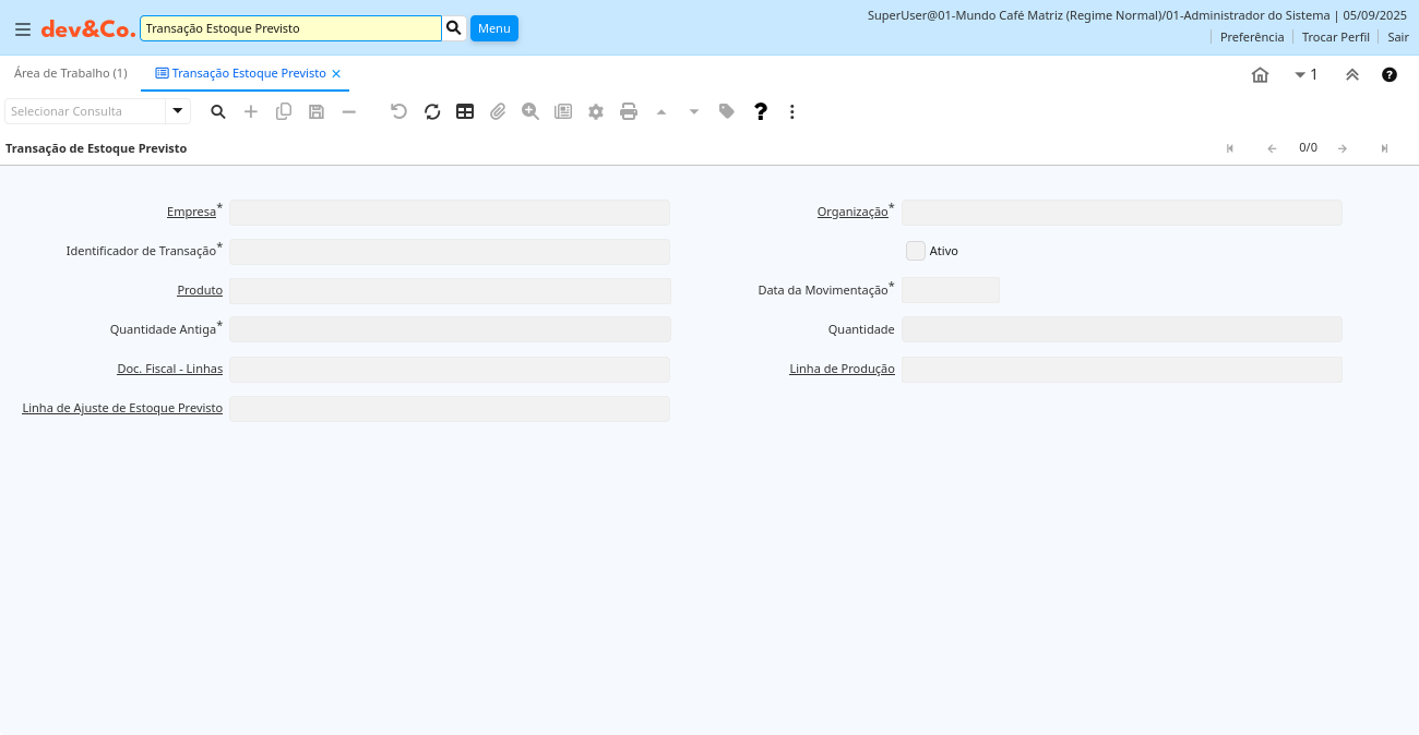Aba: Transação de Estoque Previsto
