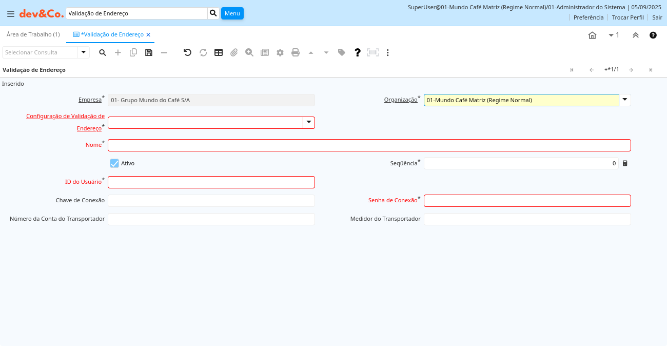 | Chave de Conexão | c_addressvalidation.ConnectionKey character varying(60) String | ||